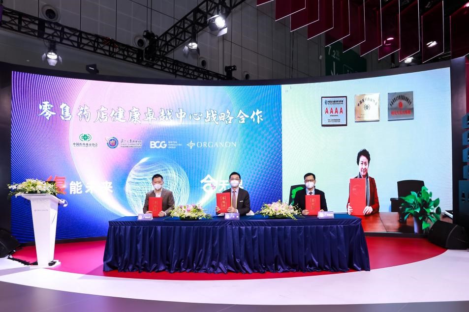 2022年11月7日,“零售药店健康卓越中心”战略合作备忘录的签署仪式在进博会欧加隆展台成功举行。“零售药店健康卓越中心”项目由中国医药商业协会主办,复旦大学管理学院承办,全球领先的医疗健康公司欧加隆和波士顿咨询公司(BCG)等多家企业共同支持和参与,通过产学研多方合作,搭建起国内首个具有代表性的“实践分享、理论提炼、能力提升”的医药新零售标杆平台。