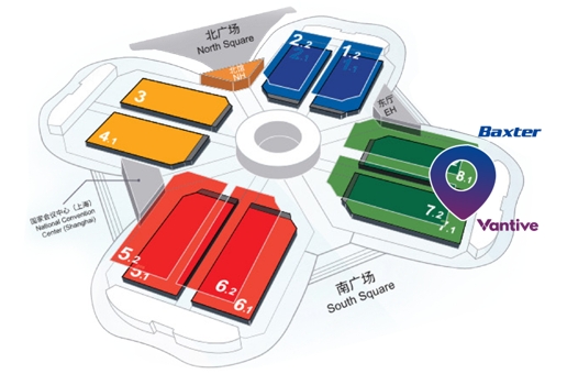 7.1馆医疗器械及医药保健展区,7.1B2-02百特肾脏护理业务万益特展台。